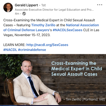 National Association of Criminal Defense Lawyers Promotion of Attorney Tim Zerillo Speaking In Las Vegas This Fall
