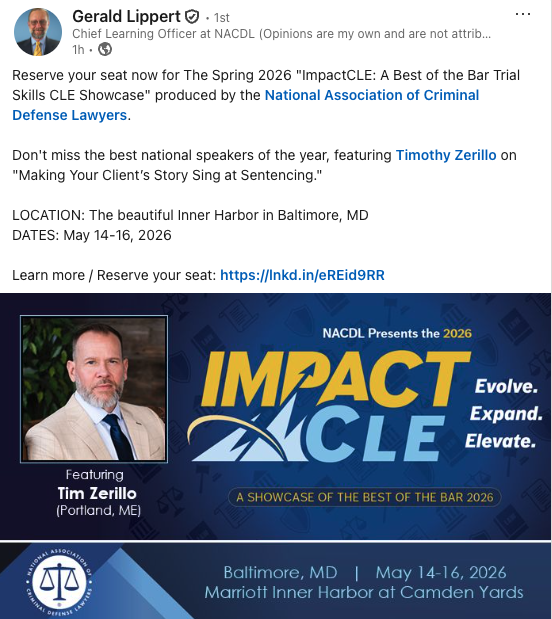 Tim Zerillo Starring In "Best of the Bar" NACDL CLE In Baltimore